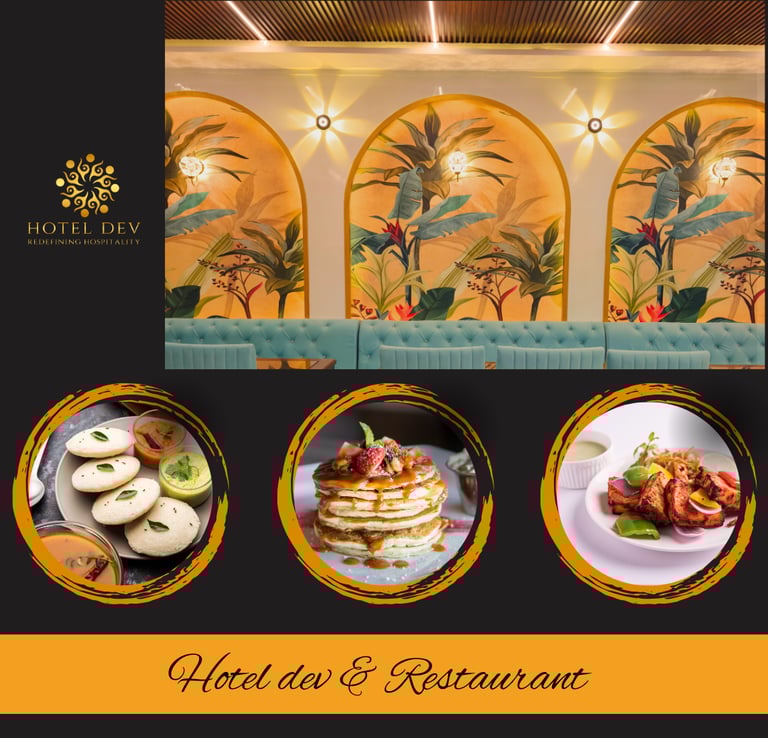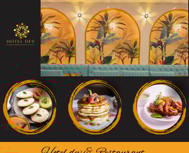 Experience luxury dining inspired by Hotel Dev Auraiya — where exquisite cuisine, timeless elegance, and heartfelt hospitality come together to create an ambiance of pure sophistication. Every dish is a celebration of flavor and artistry, crafted to delight your senses and create unforgettable moments for every guest.